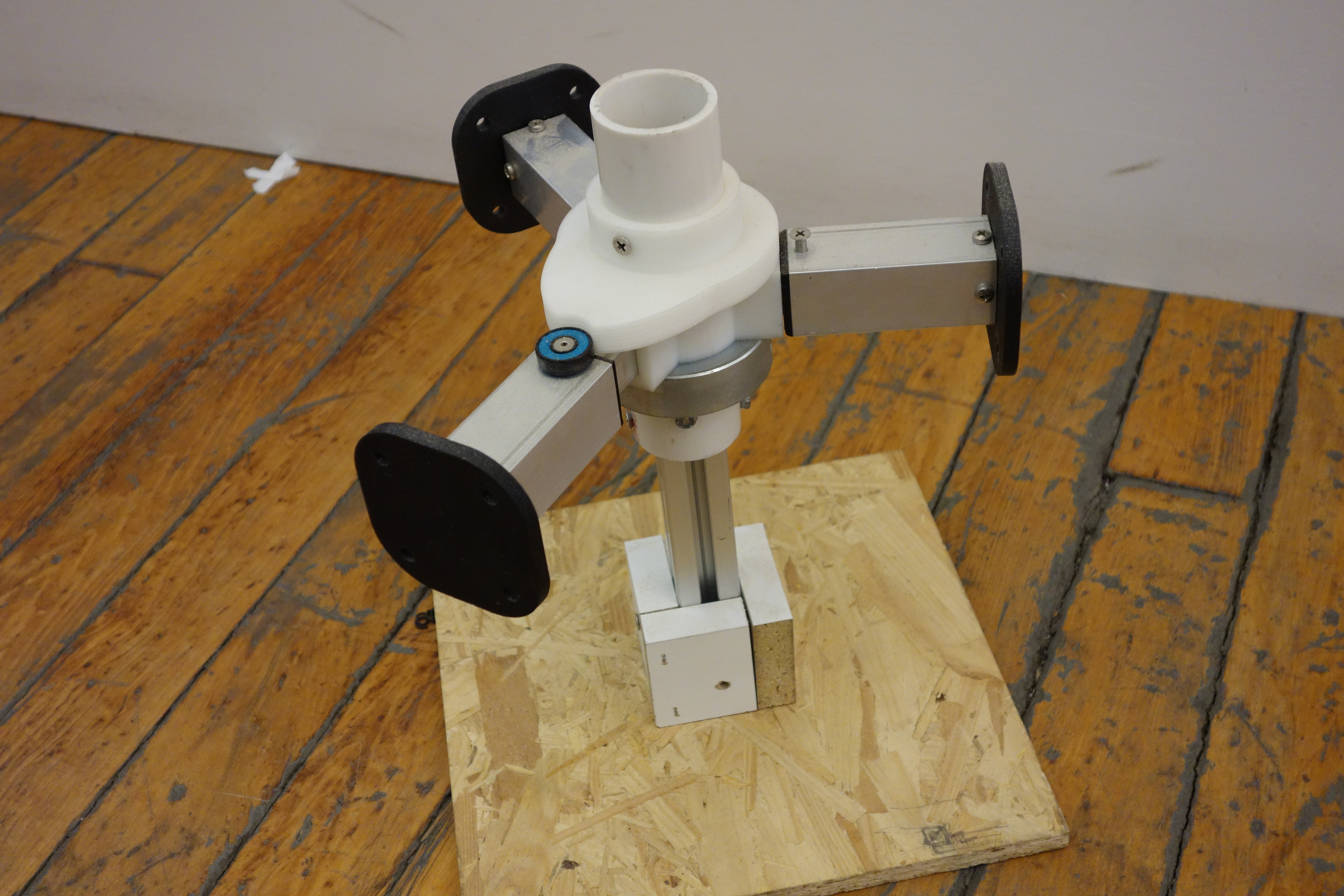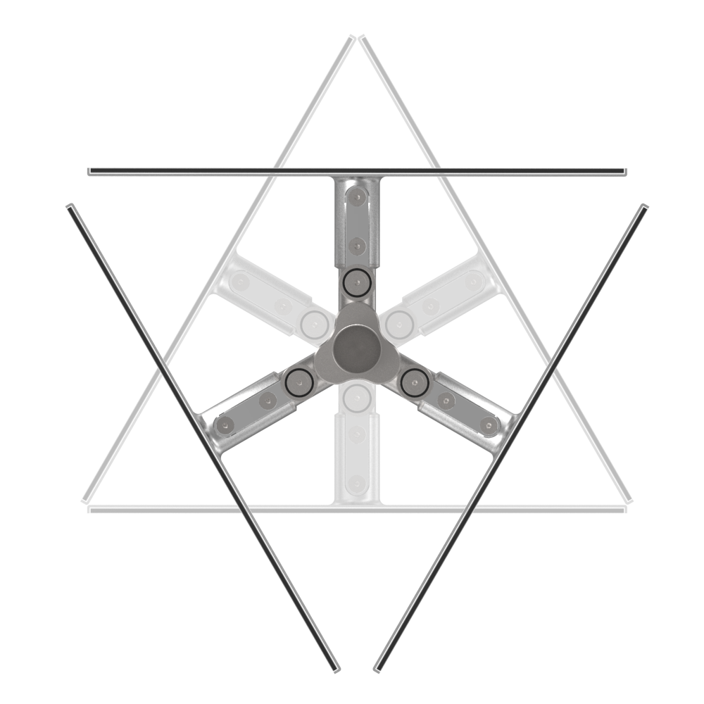 The triads expand when rotated through the use of a cam mechanism and snap into place. Each story is displayed on a single triad with a strong central image, a brief overview, and a fact-based diagram or info graphic. The team settled on the triangle as the basic building block to reveal the stories in a non-linear way.