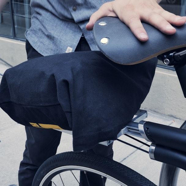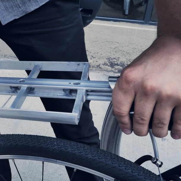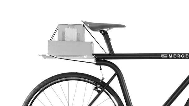 Hidden functionality is built in to every inch of the Merge bike. Extend the spring-loaded aluminum rear rack when you need to carry some light cargo and secure it with the built-in bungee cable. When the job is done the rack retracts back into the tube at a moment's notice.