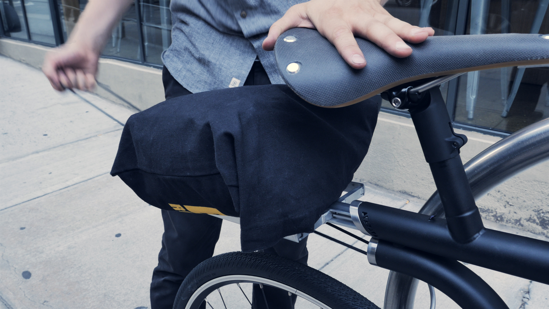 Hidden functionality is built in to every inch of the Merge bike. Extend the spring-loaded aluminum rear rack when you need to carry some light cargo and secure it with the built-in bungee cable. When the job is done the rack retracts back into the tube at a moment's notice.
